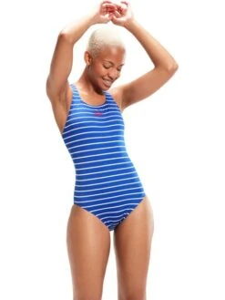 The Medalist One Piece – True Navy has the same classic medalist style, now with better eco-credentials. Speedo have updated the much-loved Endurance+ Medalist swimsuit using the super-durable new ECO Endurance+ fabric. Retaining the same cut and fit you love with great shoulder movement and flexibility, it’s now made from 50% recycled materials. Quick to dry and 100% chlorine resistant, it’s ideal for regular training sessions.